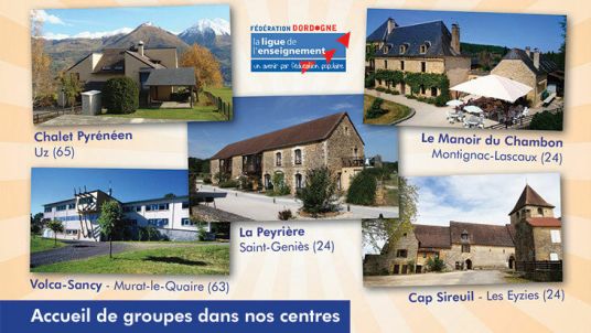 Vous êtes un groupe associatif et vous souhaitez organiser un séjour pour vos adhérents ? La ligue 24 peut vous accueillir dans ses 5 centres ! En 1/2 pension ou en pension complète, avec des propositions d'animations ou de visites...